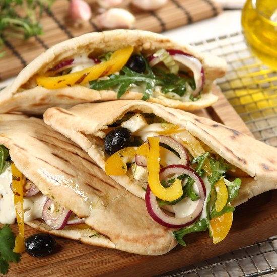 Chlebki pita opiecz z obu stron na suchej rozgrzanej patelni. Gdy „napęcznieją” zdejmij je i rozetnij każdy z nich tak, aby powstały kieszonki.