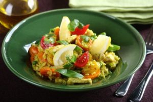 Hiszpańska paella Czas przygotowania: 60 minut Ilość osób: 4 Składniki: 2 piersi z kurczaka 250 g mrożonej mieszanki warzywnej 1 opakowanie Sosu do warzyw na ciepło do mieszanki warzyw ziołowo-maślany … Czytaj dalej Hiszpańska paella